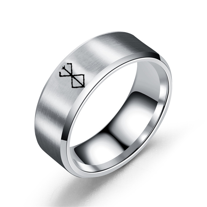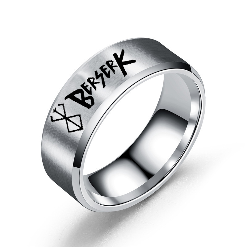 European and American Style Berserk Anime Series Laser Engraved Ring with Logo Design